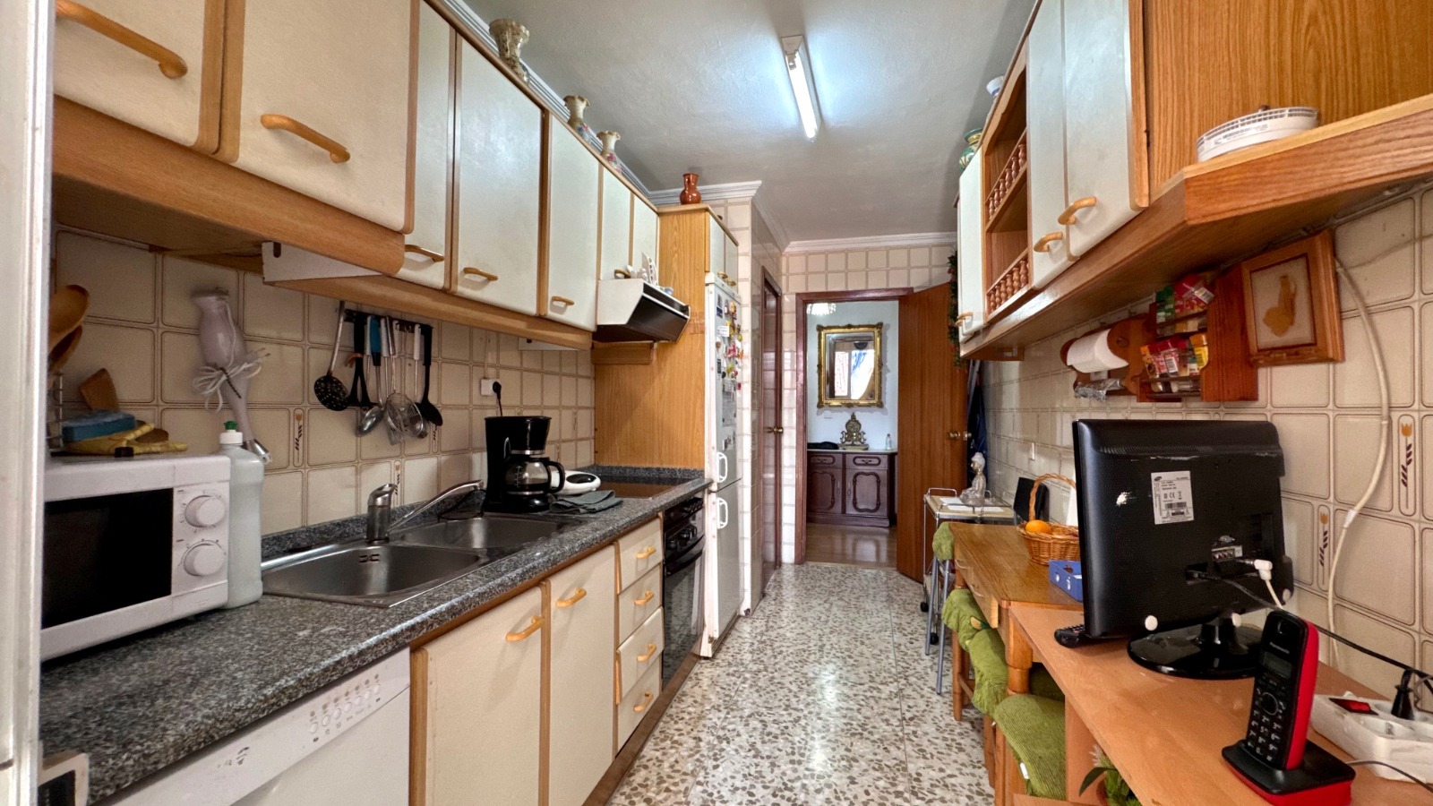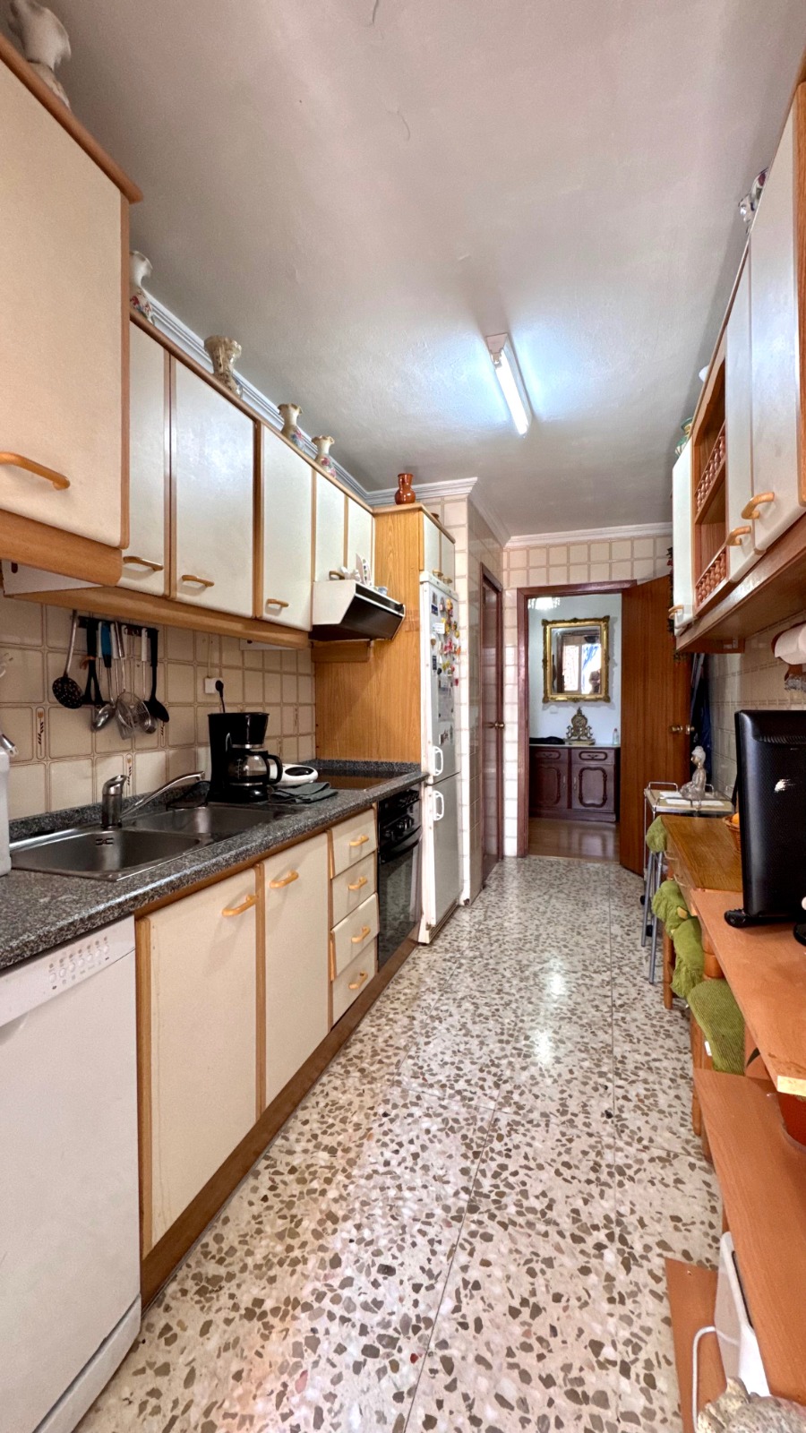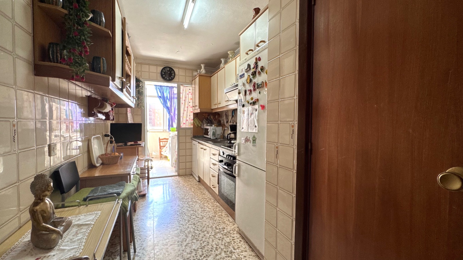 La cocina, equipada con terraza lavadero y alacena, ofrece un espacio funcional para tus actividades diarias. Aunque el piso necesita algo de reforma, su potencial es innegable. La plaza de garaje es amplia y cómoda, adecuada para cualquier tipo de vehículo, y está incluida en el precio, lo que añade un valor extra a esta oferta.